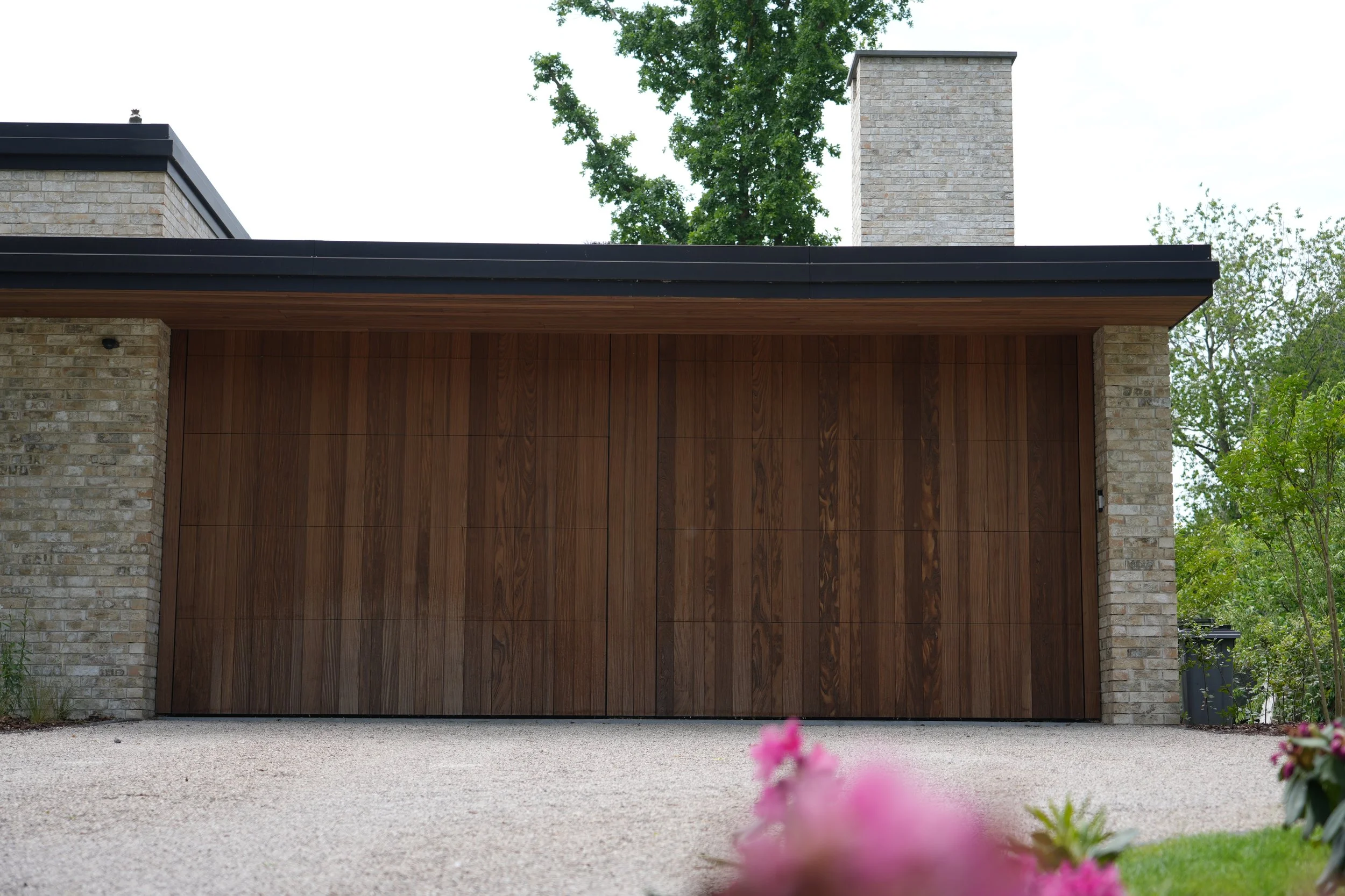 Strakke houten garagepoorten zijn populair bij mensen die een eigentijdse en minimalistische uitstraling wensen voor hun huis. Ze kunnen goed samengaan met moderne architectuur en design, maar kunnen ook een mooi contrast vormen bij traditionele huizen door een vleugje van eigentijdse stijl toe te voegen.