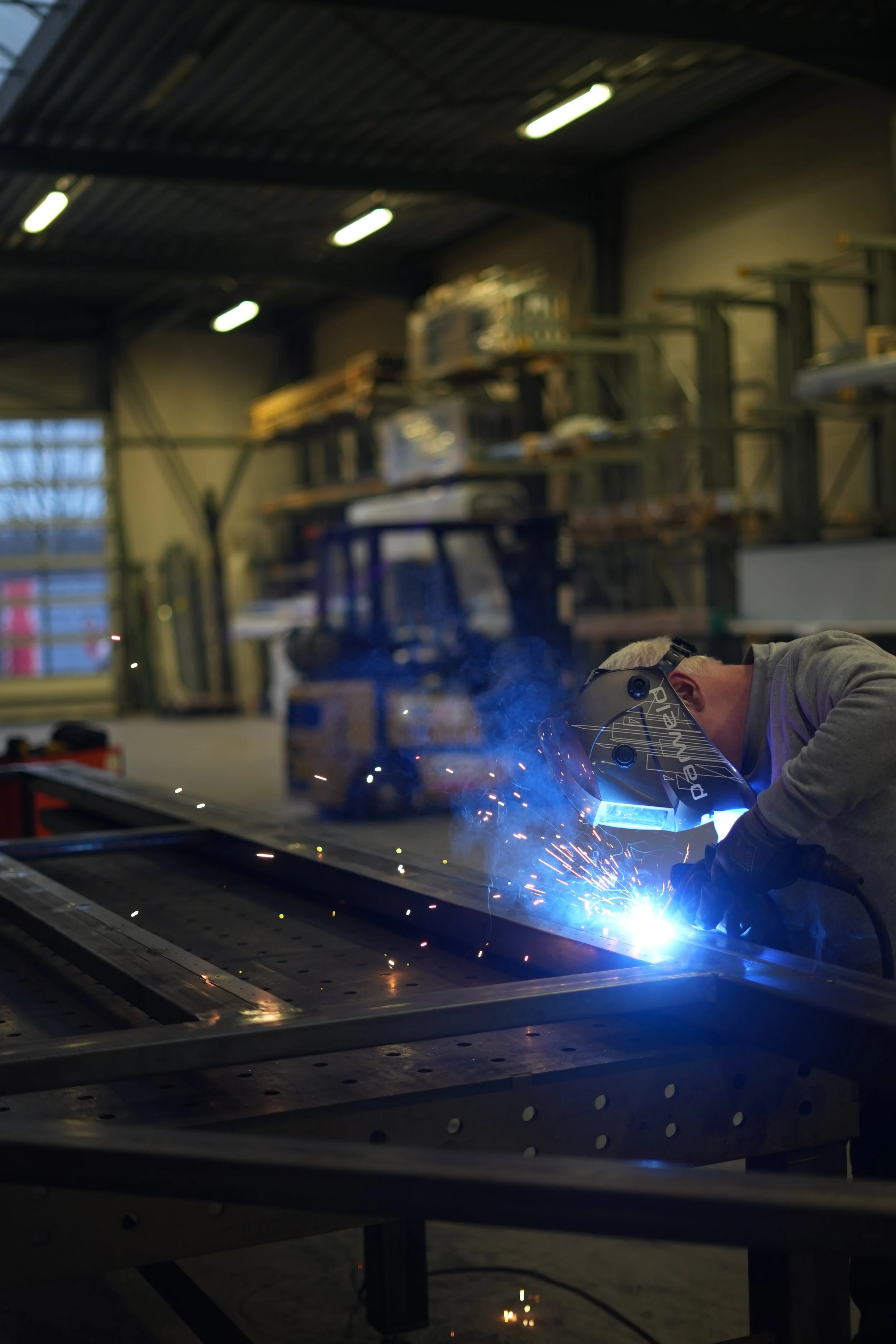 Onze lasser maakt het basisframe in staal of aluminium, dat garant staat voor stevigheid en duurzaamheid.